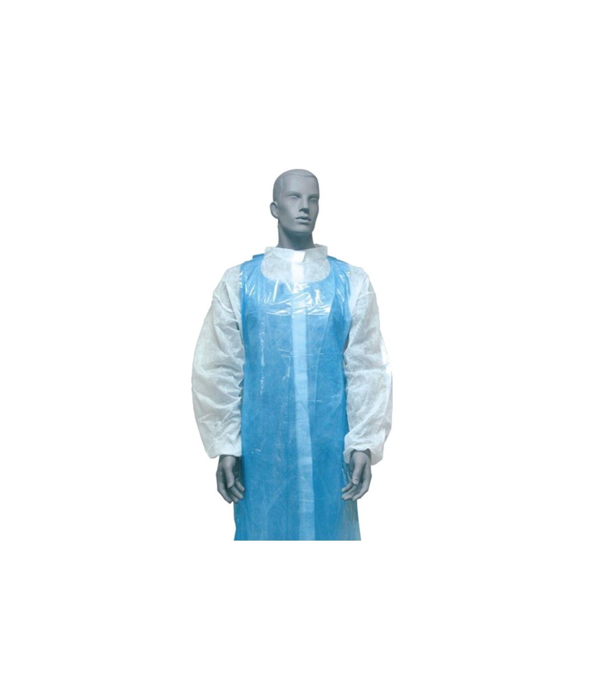 Blue disposable apron for single use.
